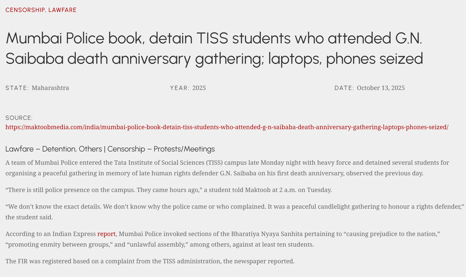 When a spontaneous gathering of students is criminalised – A report of the TISS students’ meeting to commemorate Prof GN Saibaba