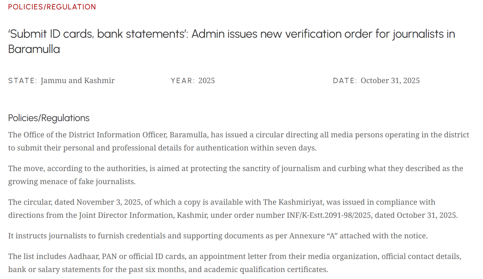 Media freedom in Kashmir after Art.370 abrogation